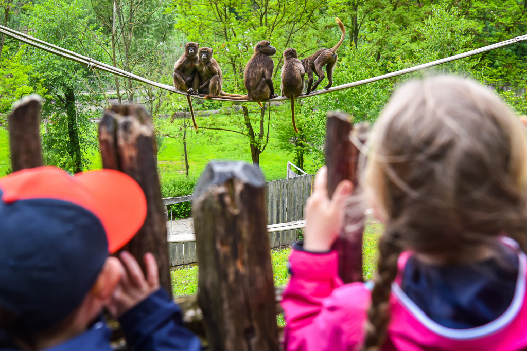 Africa at Zlín Zoo – this is about animal houses of native hut design, extensive enclosures with typical ambassadors of mammals & birds of the African savannah, semi-desert areas and Ethiopian mountains with endemic gelada baboons, flamingos wading in the lagoon, or "little Madagascar" in the form of ring-tailed lemur displays located on islands.