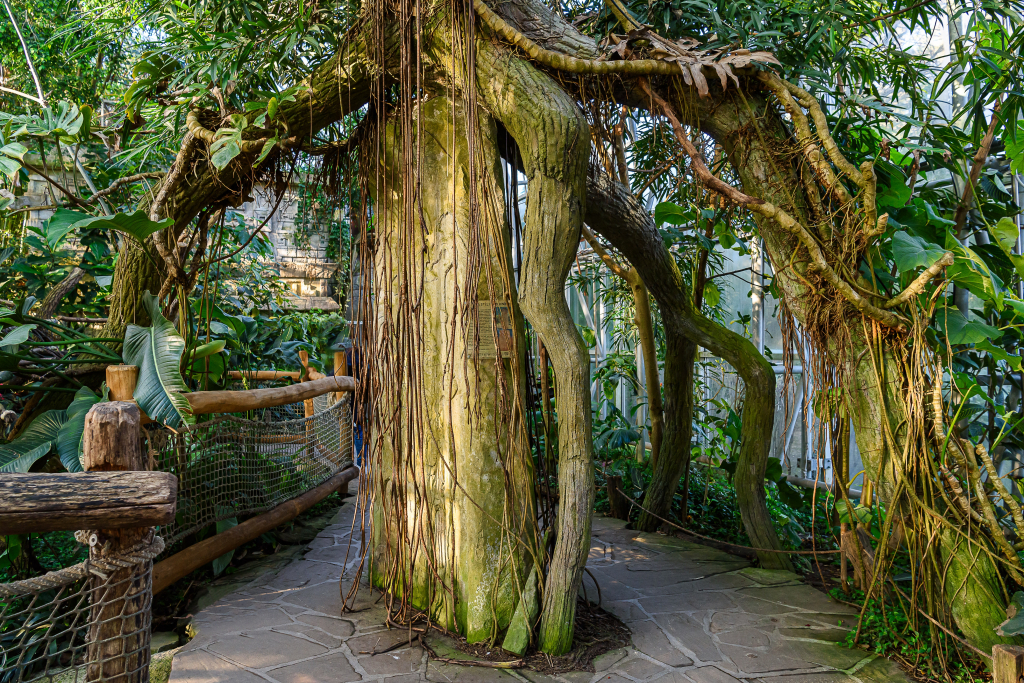 Jungle plants – 170 species from Central America, complemented by artificial trees that support the hall structure and conceal the ventilation system.