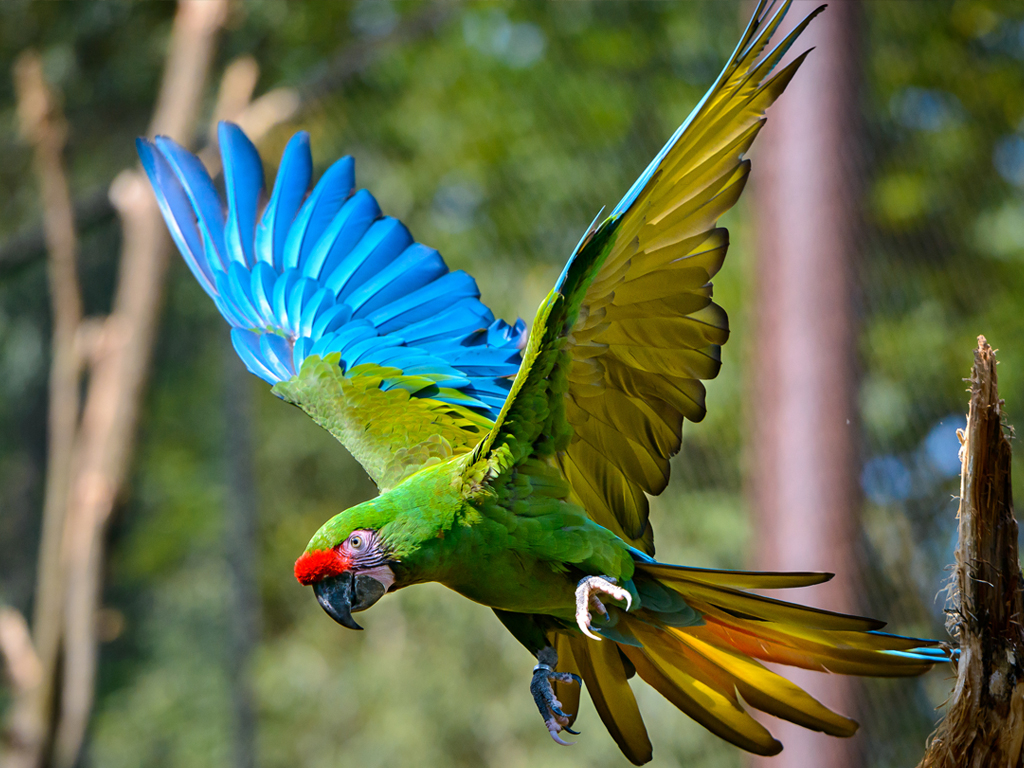 Birds: Blue-and-gold macaw, Red-and-green macaw, Hyacinth macaw, Military macaw, Red-shouldered macaw, Collared aracari