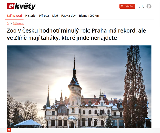 Článek si můžete přečíst na https://www.kvety.cz/zajimavosti/zoo-v-cesku-praha-navstevnicky-rekord-zlin-chovna-stanice-lvu-zamek-rust-plochy/.