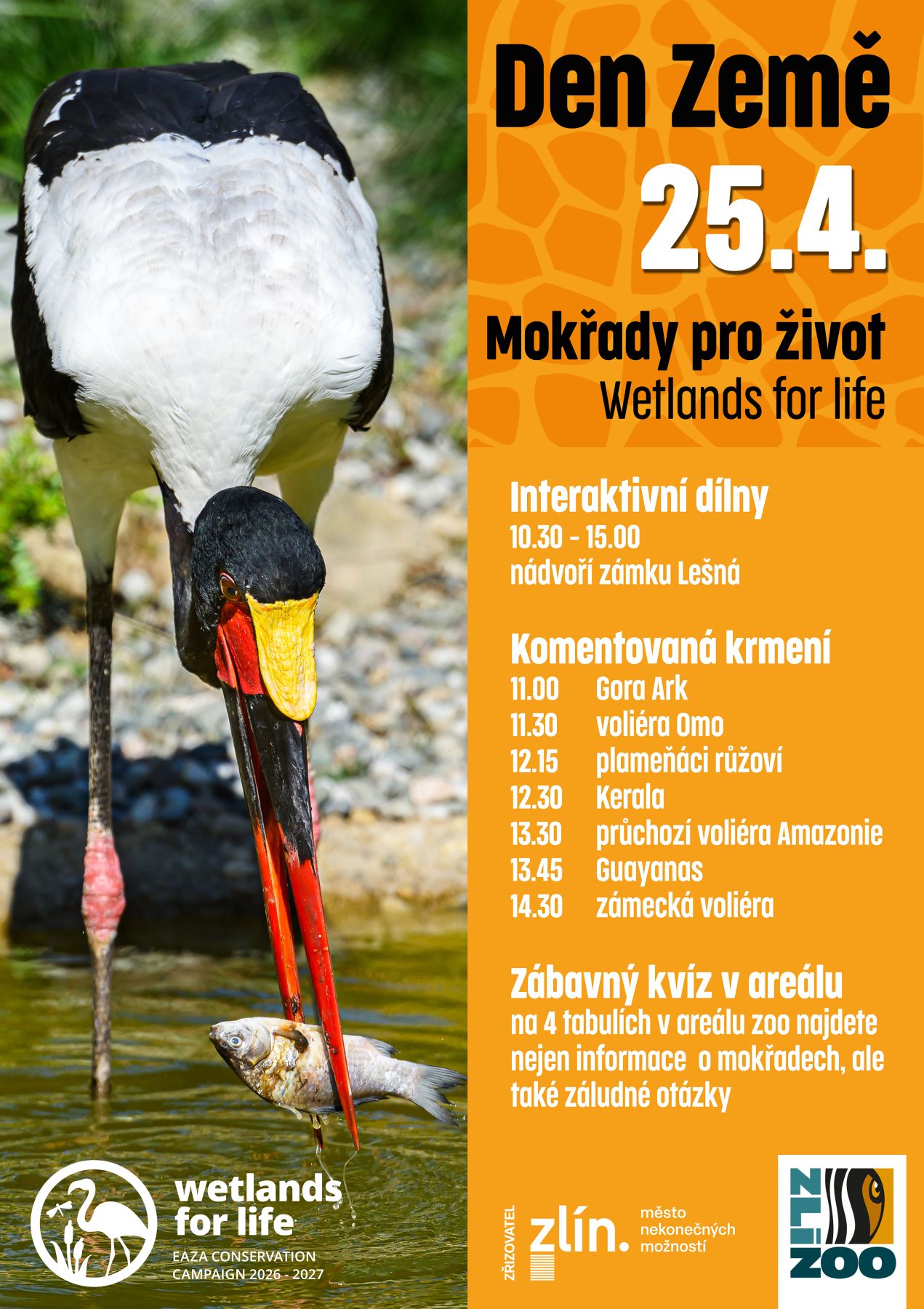 Mokřady pro život je název kampaně Evropské asociace zoologických zahrad a akvárií (EAZA), která bude po dva roky (2026 a 2027) věnována ohrožení a ochraně nejcennějších a zároveň nejohroženějších ekosystémů na Zemi – mokřadů. Mezi mokřady patří nejen rašeliniště, prameniště či bažiny, ale také řeky, rybníky, mangrovové porosty, korálové útesy, oázy, solné pánve i obyčejná zahradní jezírka. Ačkoliv se mokřady rozkládají prakticky téměř po celé planetě, od roku 1900 jich z planety zmizelo více než 64 %. Do této kampaně se zapojila i Zoo Zlín.