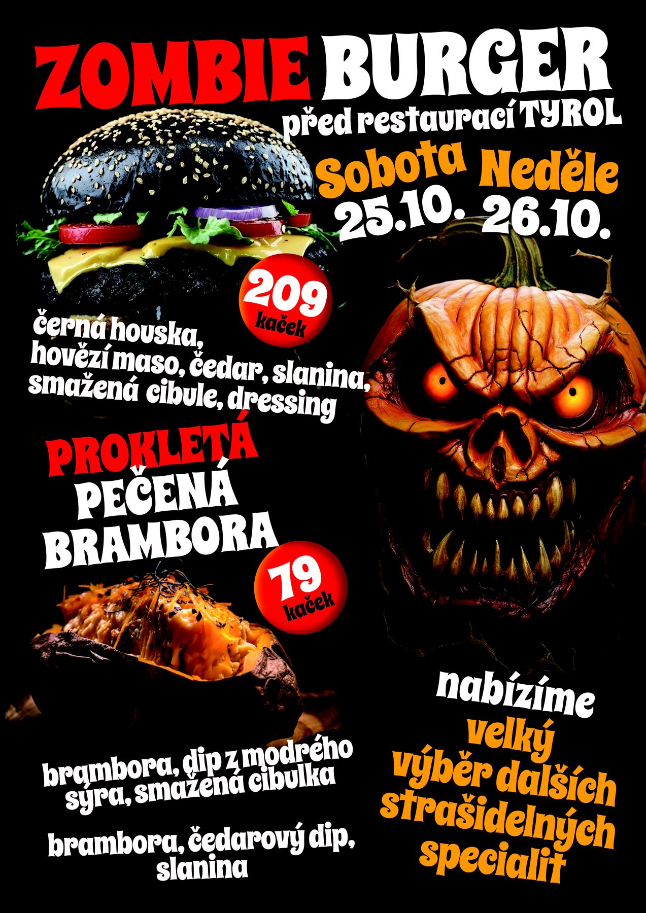 - do 20.30 Zombie burger poblíž restaurace Tyrol s naprosto fantastickými burgery