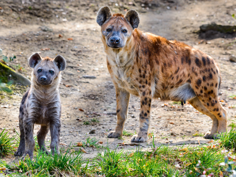 Je více lovcem než požíračem mršin. Při lovu dokáže běžet rychlostí 65 km/hod. Ze všech afrických masožravých savců má nejsilnější stisk čelistí. V odstraňování mršin nemá v Africe konkurenci. Požírá i velké kosti, které drtí silnými čelistmi a stráví díky kyselým šťávám v žaludku. Hyeny žijí v hierarchicky uspořádaných klanech o 5-30 jedincích. Vládne jim dominantní samice. Po čtyřměsíční březosti samice v podzemní noře porodí 1-3 mláďata. Rozmnožují se i níže postavené samice. Mládě vůdčí samice však dědí sociální postavení a má různé výsady oproti jiným mláďatům. Mladí samci smečku opouští v období dospívání, samice obvykle zůstávají. Pohlaví u hyen je velmi těžké rozeznat, samice jsou o něco větší než samci.